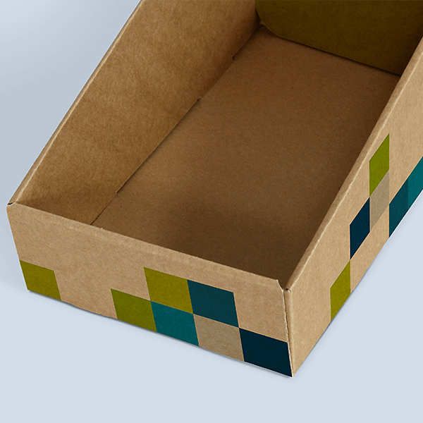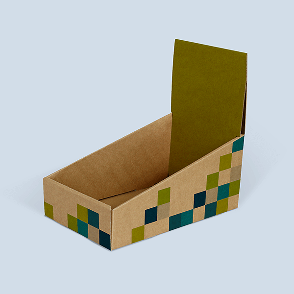 Nos présentoirs avec topper intégré sont en en carton ondulé de haute qualité EE-Welle 3 mm blanc, couché sur les deux faces.
